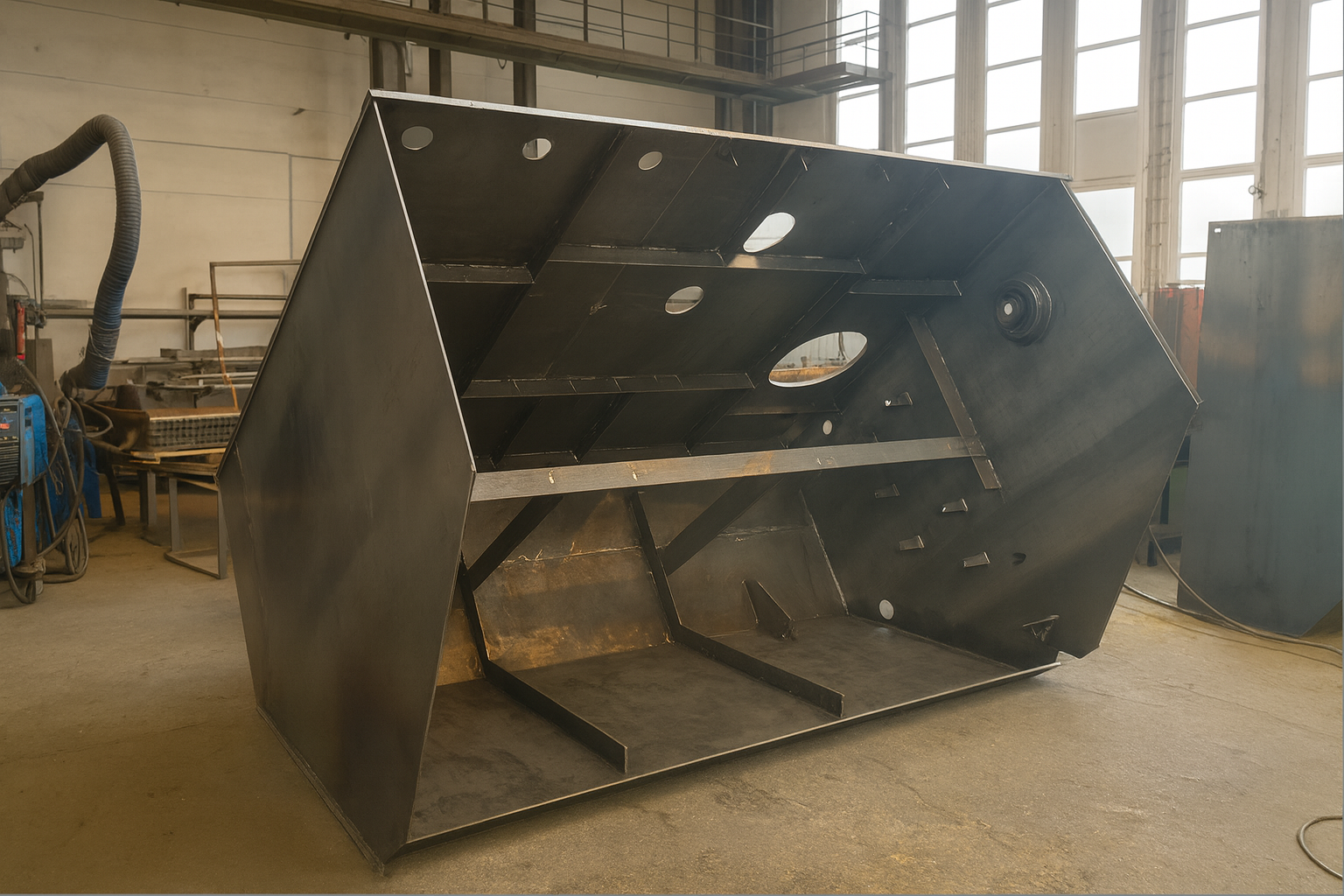 - Zajišťujeme výrobu a dodání ocelových komponent a konstrukcí i speciálních svařenců.